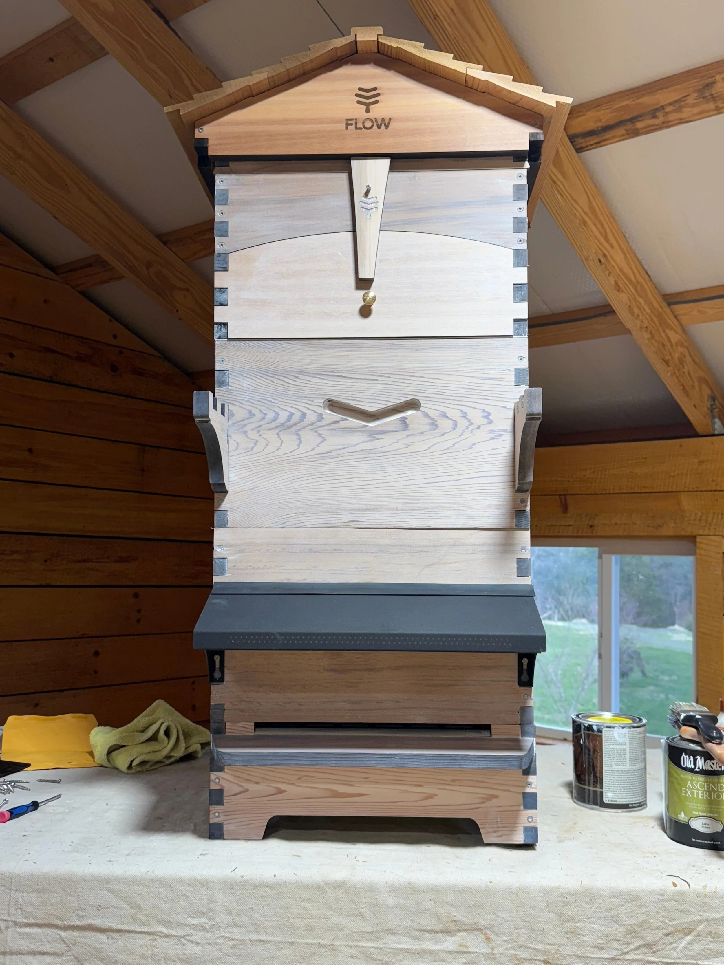 Building the flow bee hive has been a major project over the past week. But it is almost done. Due to our busy schedule, we went with the flow hive and now have a colony of bees on order for mid-April.