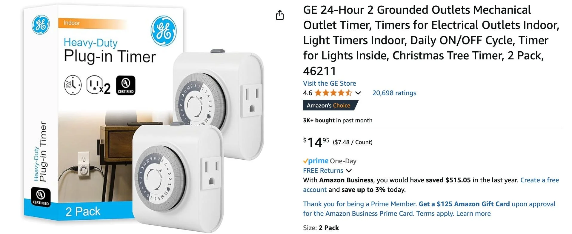 The timer is super simple and can be plugged into any outlet. These set-ups are great for citrus plants that have been brought into the house for the winter as well as indoor plants that like a bit more light. The timer looks like this;