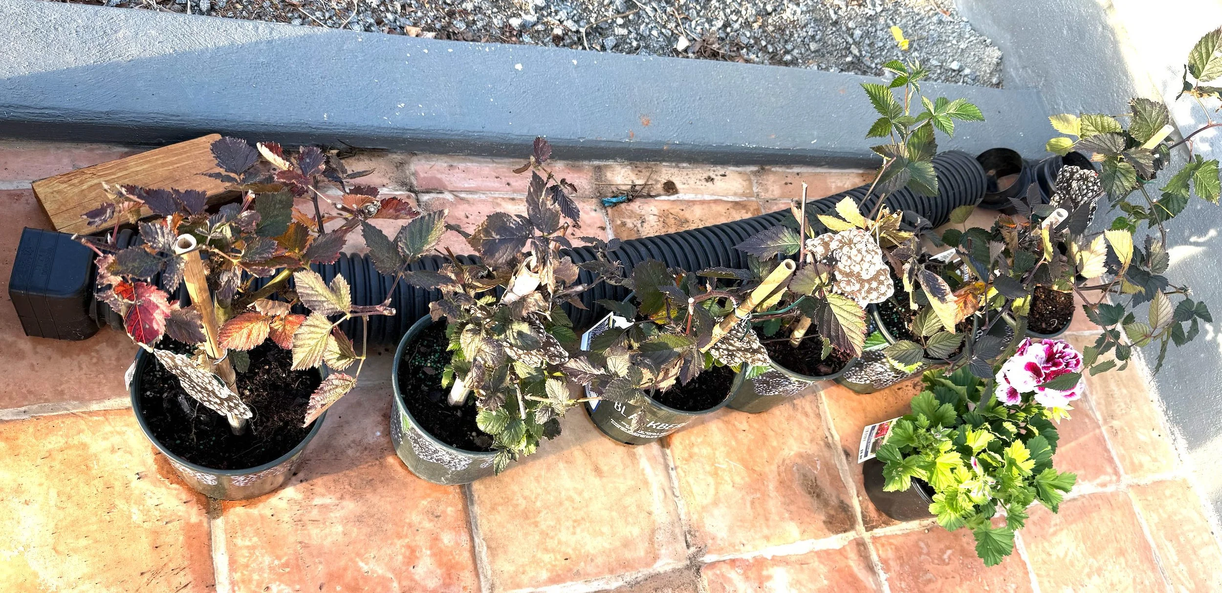 We picked up six more thornless blackberry plants at a decent price this week, which will be planted in front of the house. This area has been a bit of a disaster, as we have tried for six years to get blue-rug junipers to spread. But each year, the weeds overtake the plants, and the sun is too hot and humid here for them to thrive. So, we are giving up and going to create a planted bed - with perennials, evergreens, and many edible plants mixed as well. So, more blueberries, blackberries, and dwarf peach trees will be planted. We will add in nandina, black-eyed susans, and pyracantha as the season progresses and we find suitable plants at the local nurseries.
