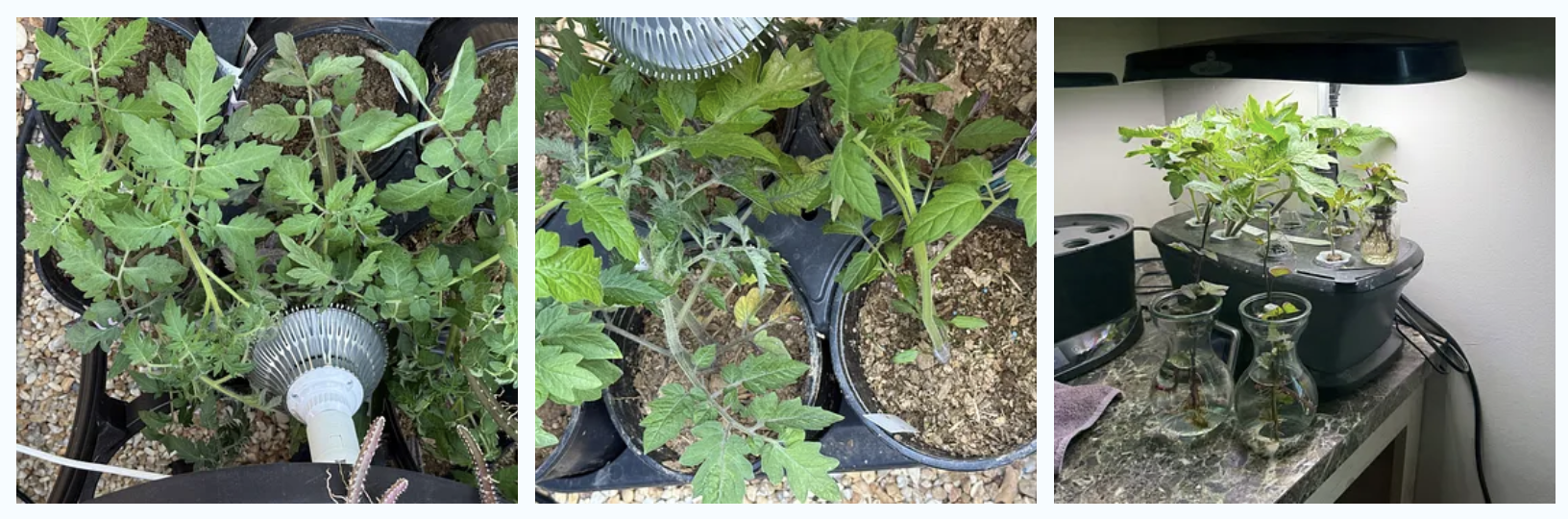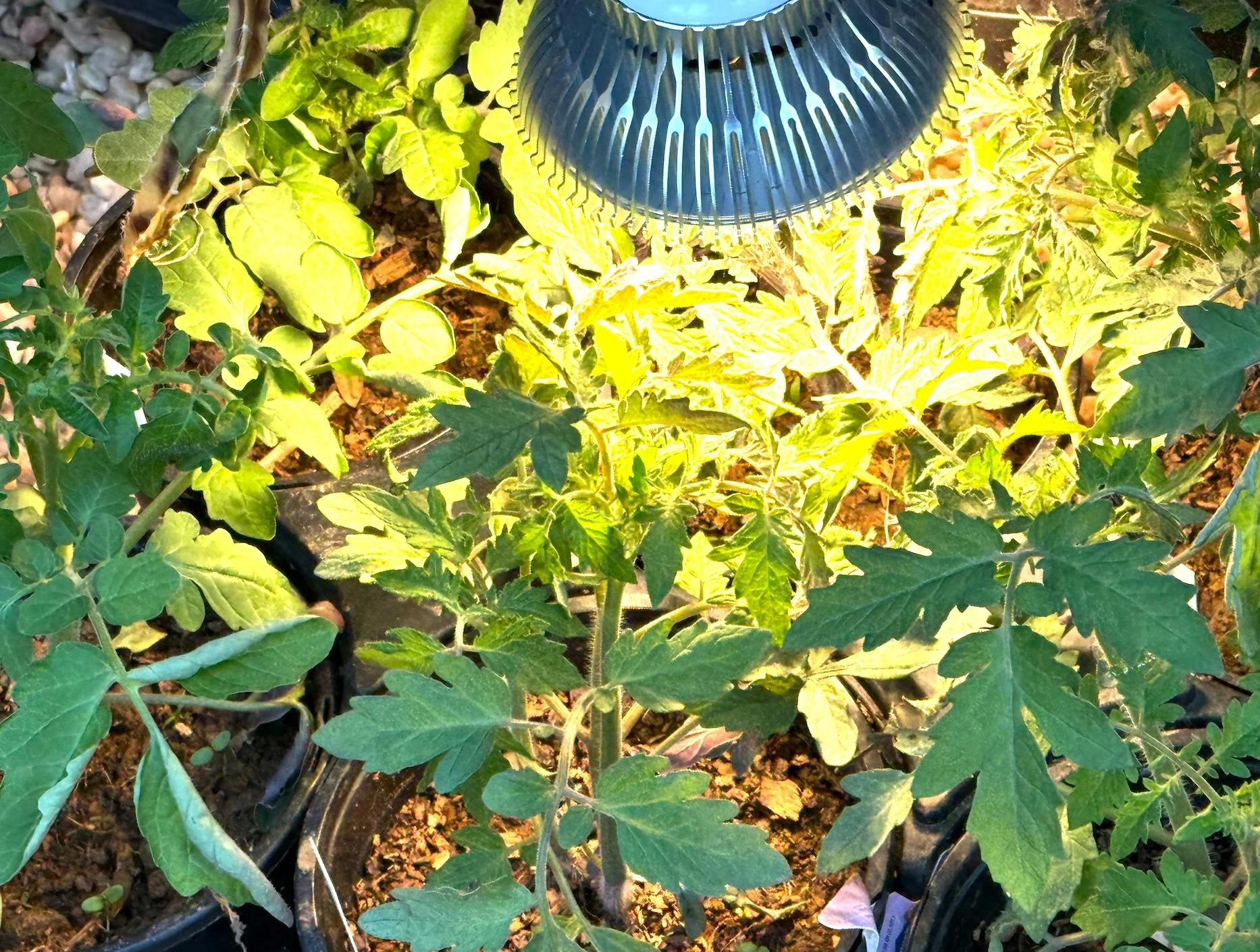 This year, I started my tomato seeds in the AeroGarden in two different batches, spaced two weeks apart. The first set was planted on February 13th, yielding eleven re-potted plants two weeks later. Those plants then went into the greenhouse with grow lights setup with a timer. I like 16 hours with lights and 8 hours off. The second batch of tomatoes is still in the AeroGarden.