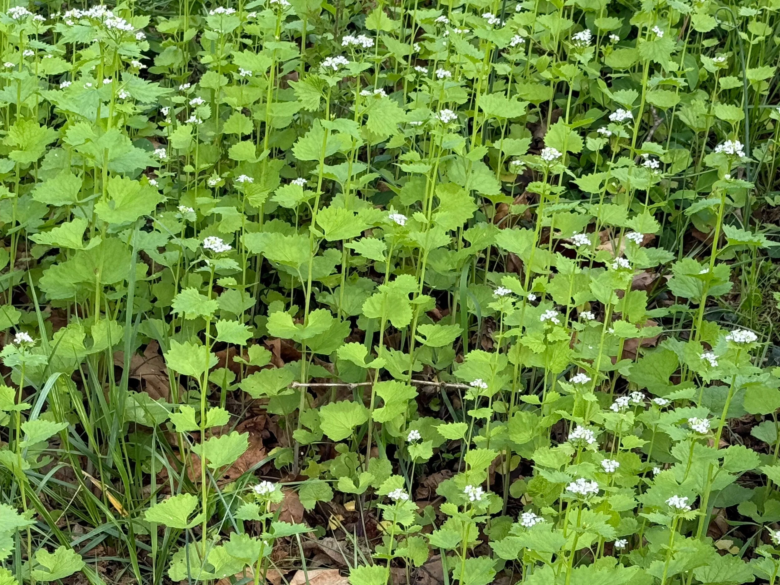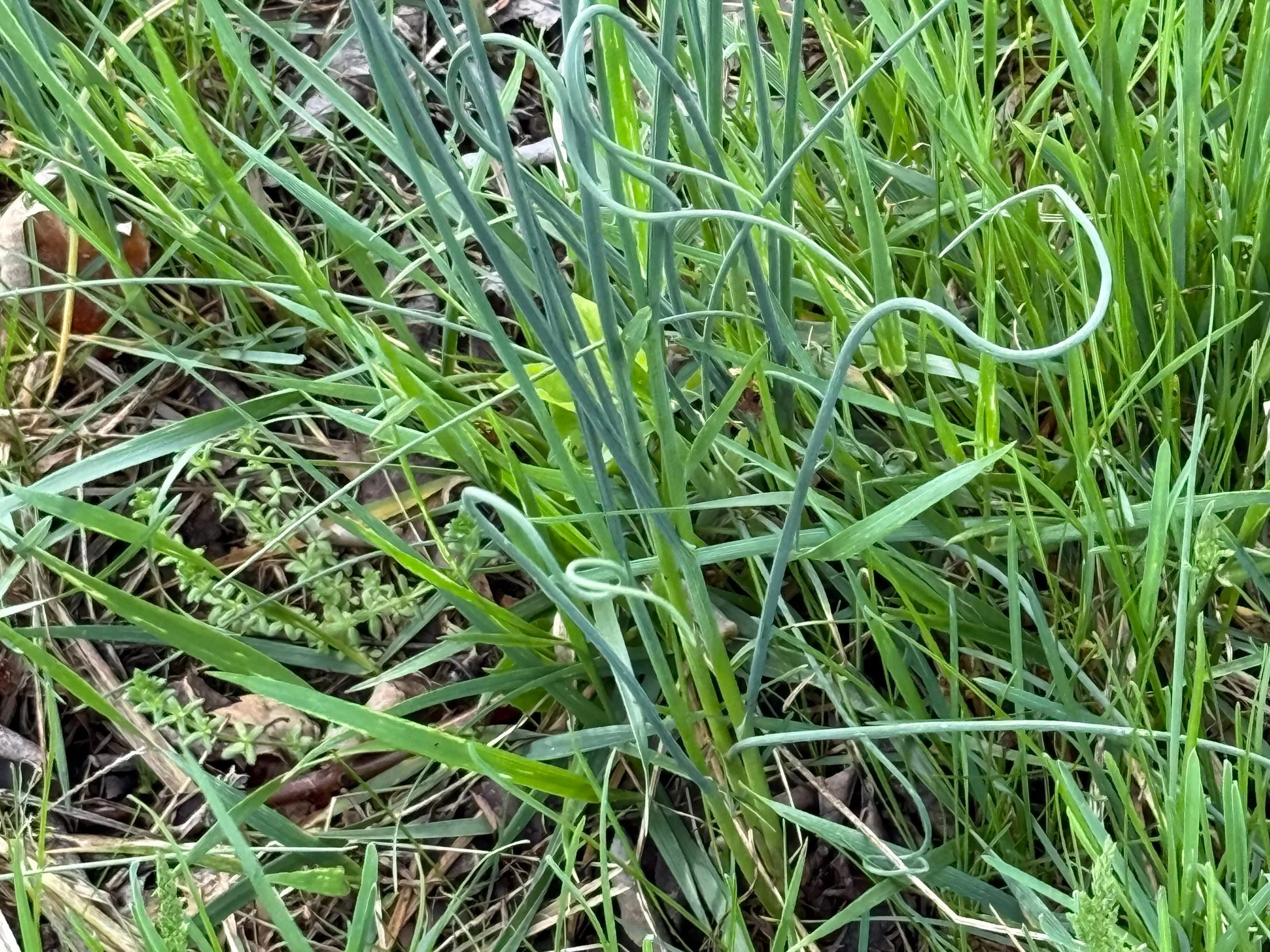 Allium canadense (Wild Onion) is native to the eastern U.S. This species resembles cultivated spring onions but is more slender and taller, with solid, flat leaves that can be curly at the top. It tastes like onion and is great in Asian food, particularly soups.Allium vineale (Wild Garlic) is an introduced species. It is often mistaken for wild onion. It has hollow, tubular leaves (unlike the flat leaves of wild onion). It smells and tastes like a combination of onion and garlic.