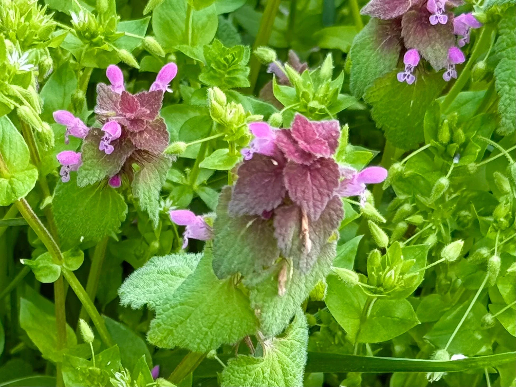 The purple dead nettle is everywhere right now. It is edible and can be added to salads, soups, and stir-fries and used as a garnish. It is also known for its medicinal benefits and can be utilized in herbal remedies. However, it is advised not to consume it in large quantities, as it does have a laxative effect if too much is eaten.