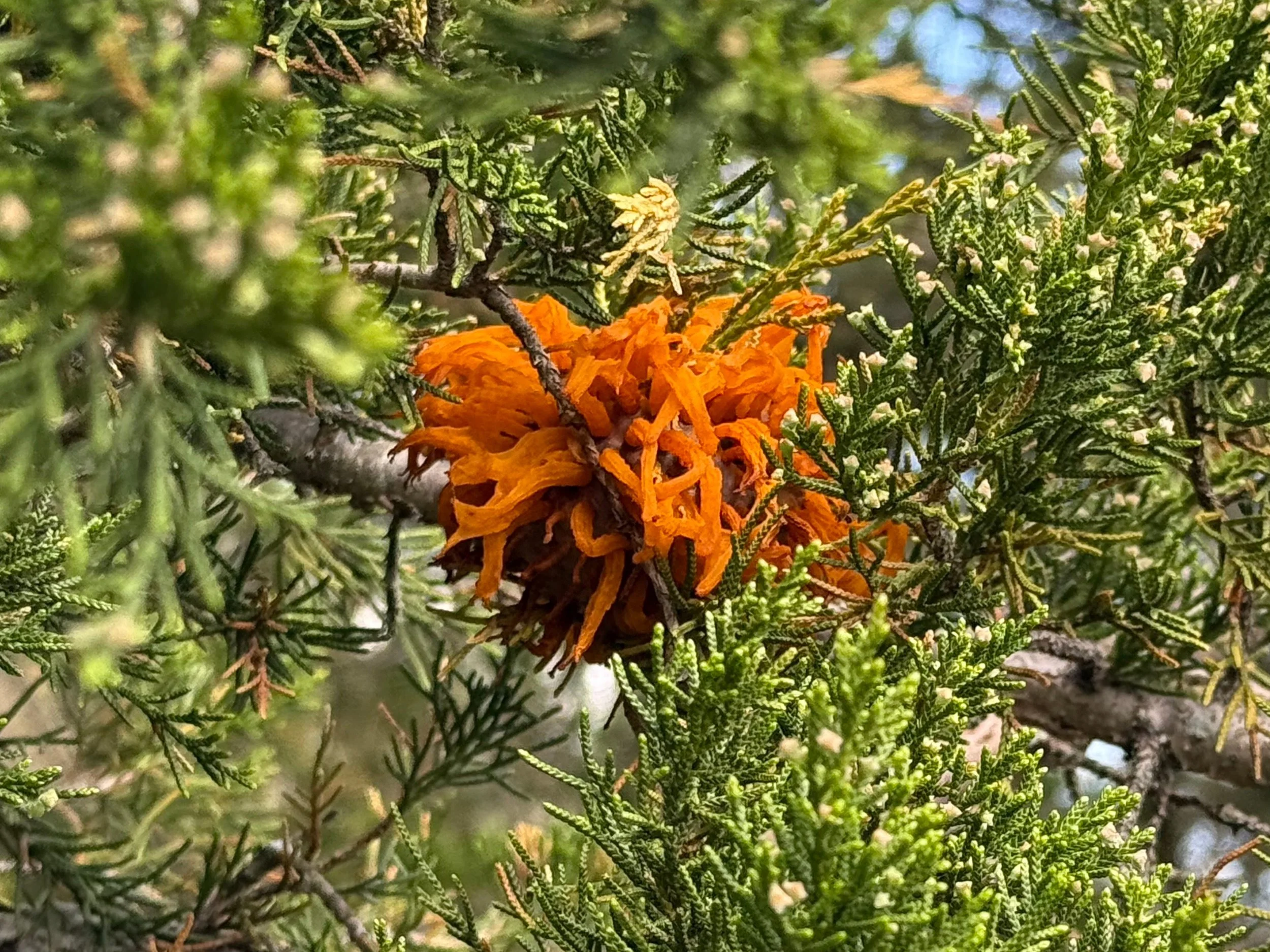 I am seeing fungus on the cedar trees - never a good sign for the apples. This nasty fungus, which is soft and jelly-like now (it turns hard later in the season) is truly a menace.