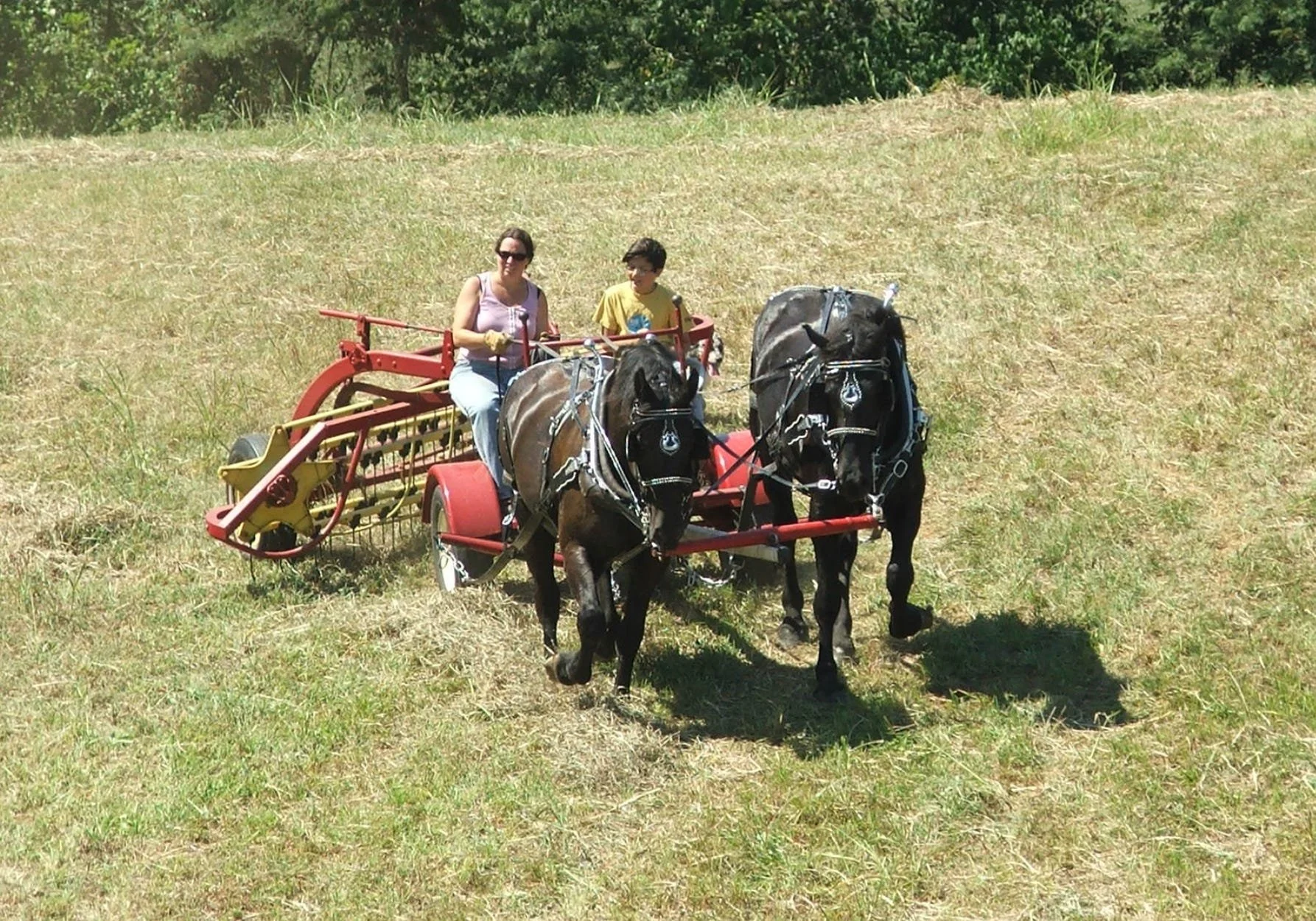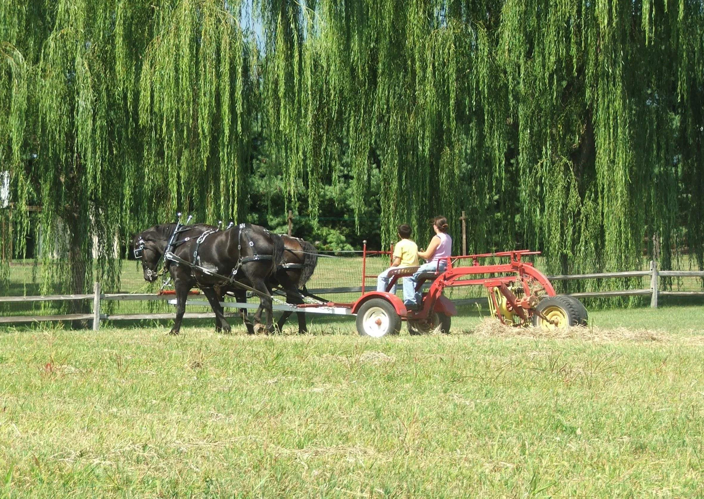 2004: Jill and our son working Anne and Katie - tedding the hay, getting ready to bale.