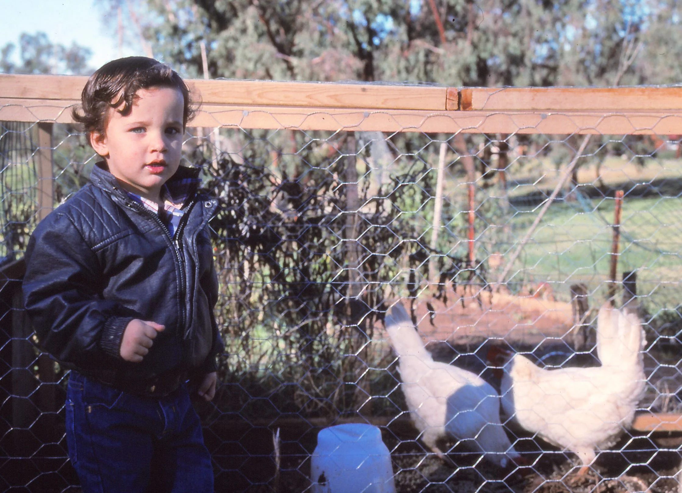 Heck, back in our married student housing days - when I worked at the Salk Institute, we had a large plot of land in the student coop. We filled that little bit of land with all sorts of vegetable plants, as well as chickens. An old photo from forty years ago depicts our son Zach, with his hens, Henny and Penny at UCSD married student housing in La Jolla, Ca.