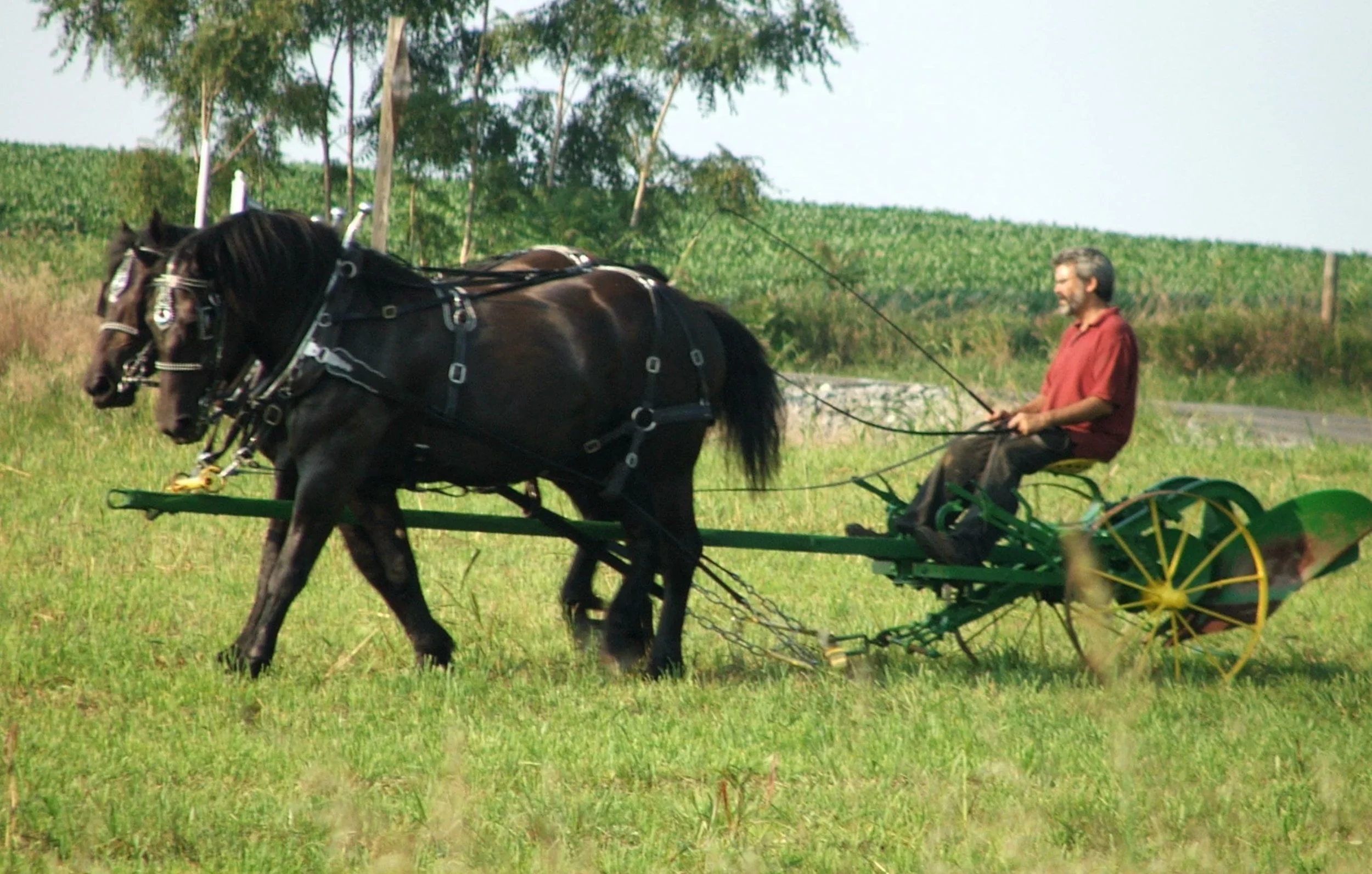 The old farmers keeping these skills alive 25+/- years ago grew up using horses to farm way back to the Great Depression up through the 1950s. They knew how to keep the soil alive, before modern farming practices. Big Ag and what the USDA has advocated for farming practices since the 1950s and 1960s destroys the bacteria and sucks the soil dry of micro-nutrients. Many of the draft horse community farmers still practiced old-style farming skills on their farms. We sucked up the knowledge as fast as we could. We went to draft horse shows, farm horse auctions and used Amish farriers (very few “light” horse farriers will work with drafts). Then, we slowly began to build up friends in that community.