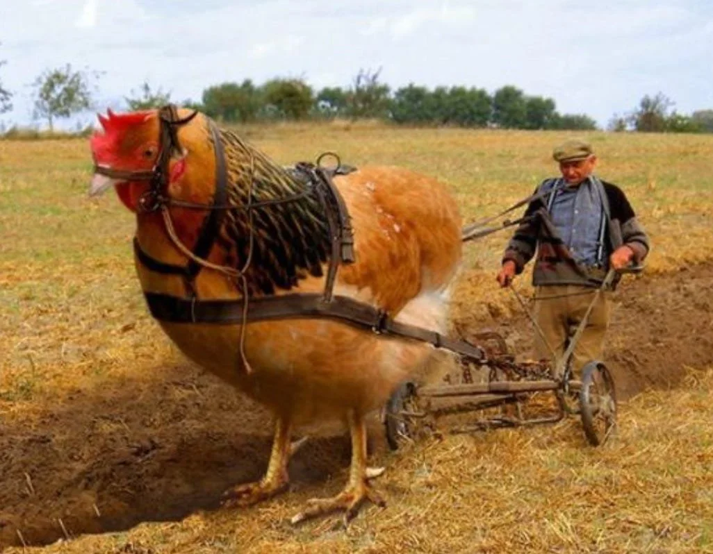 Personally, we have yet to raise a hen big enough to plow a field!