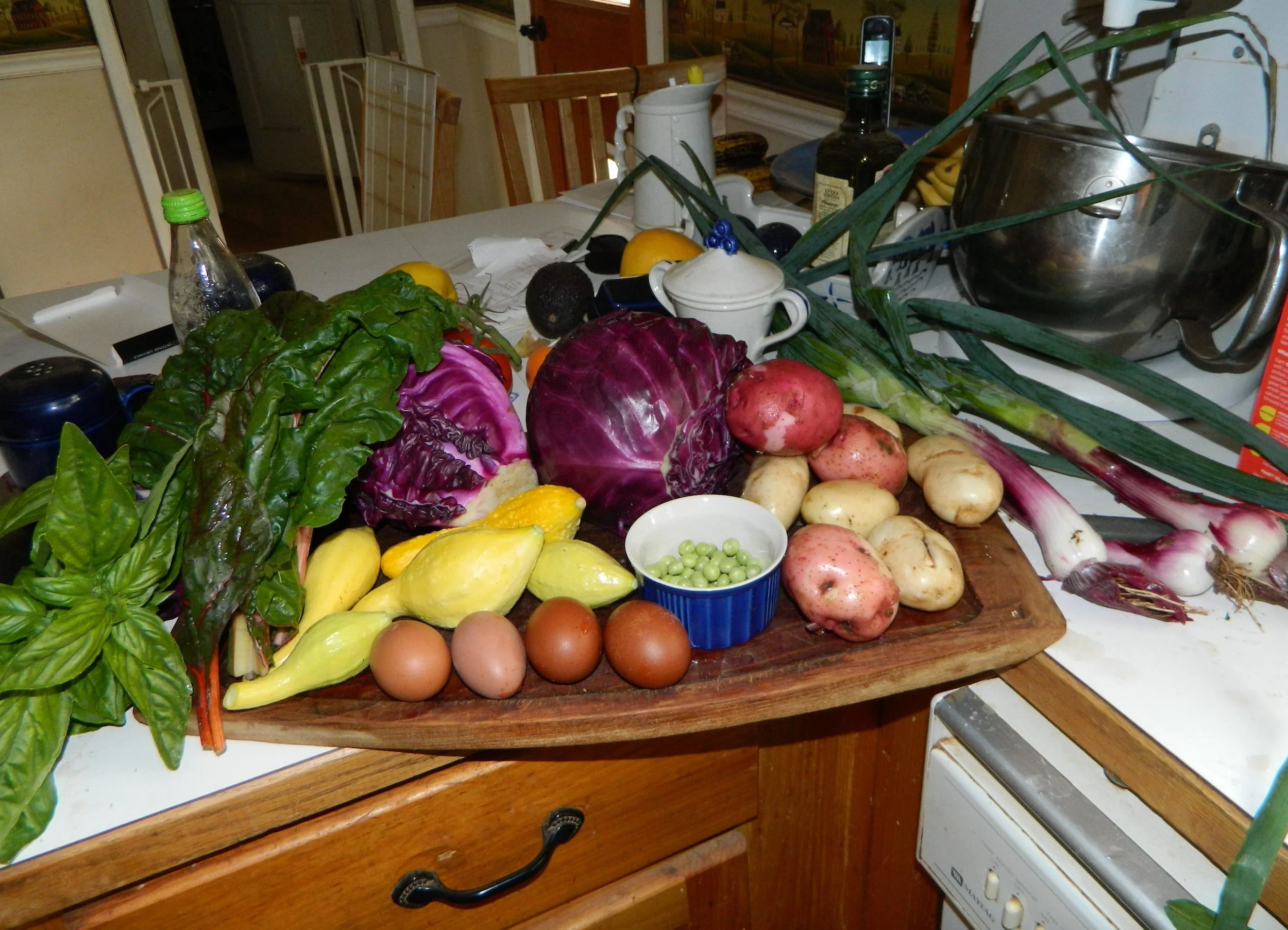 Generally, we consider the excess greens, weeds, and plant trimmings from the vegatable garden as an integral part of the chicken’s diet. The more greens they get, the more omega-3 those eggs will contain! So, the veg garden isn’t “just’ for us - as healthy eggs are an essential part of our diet!