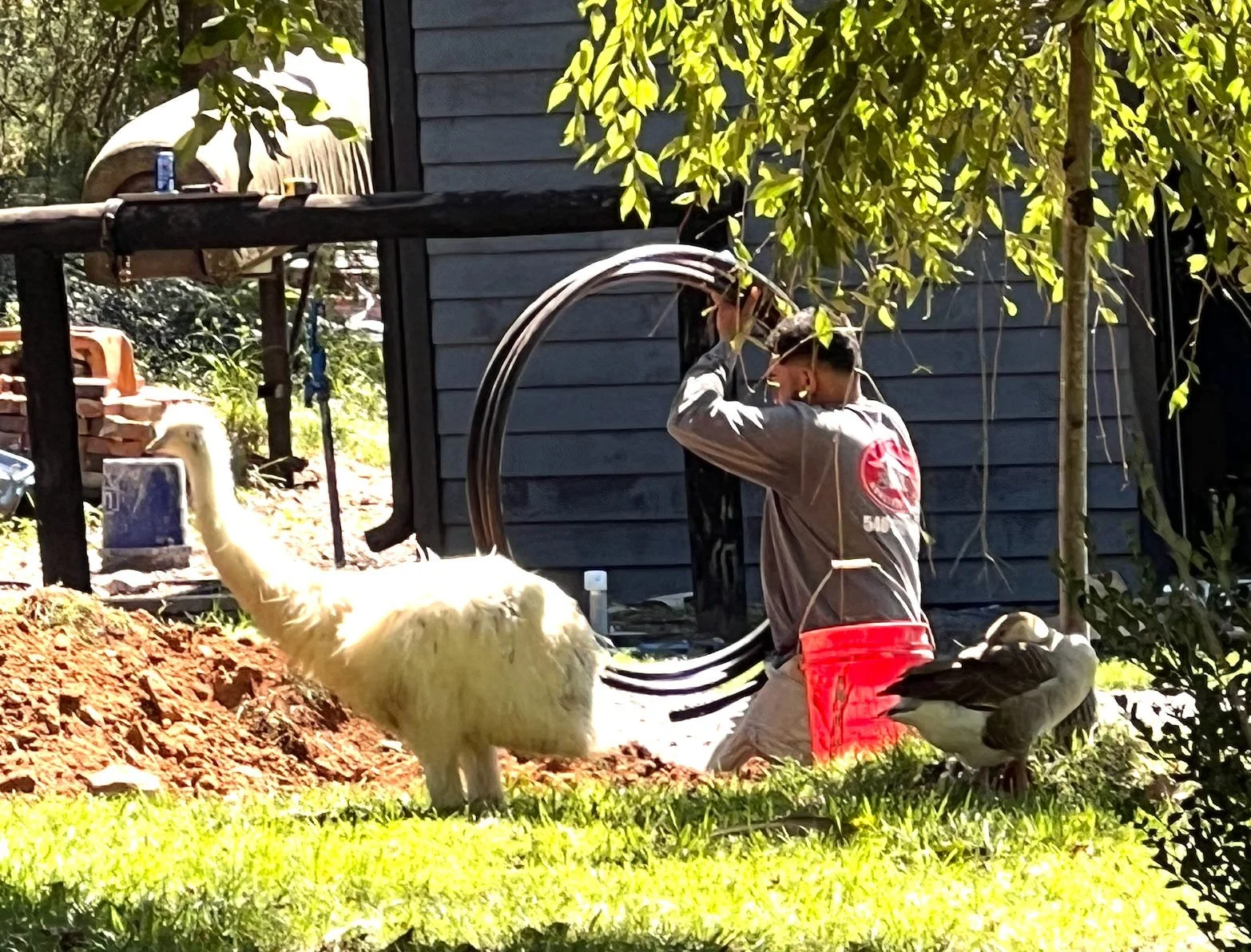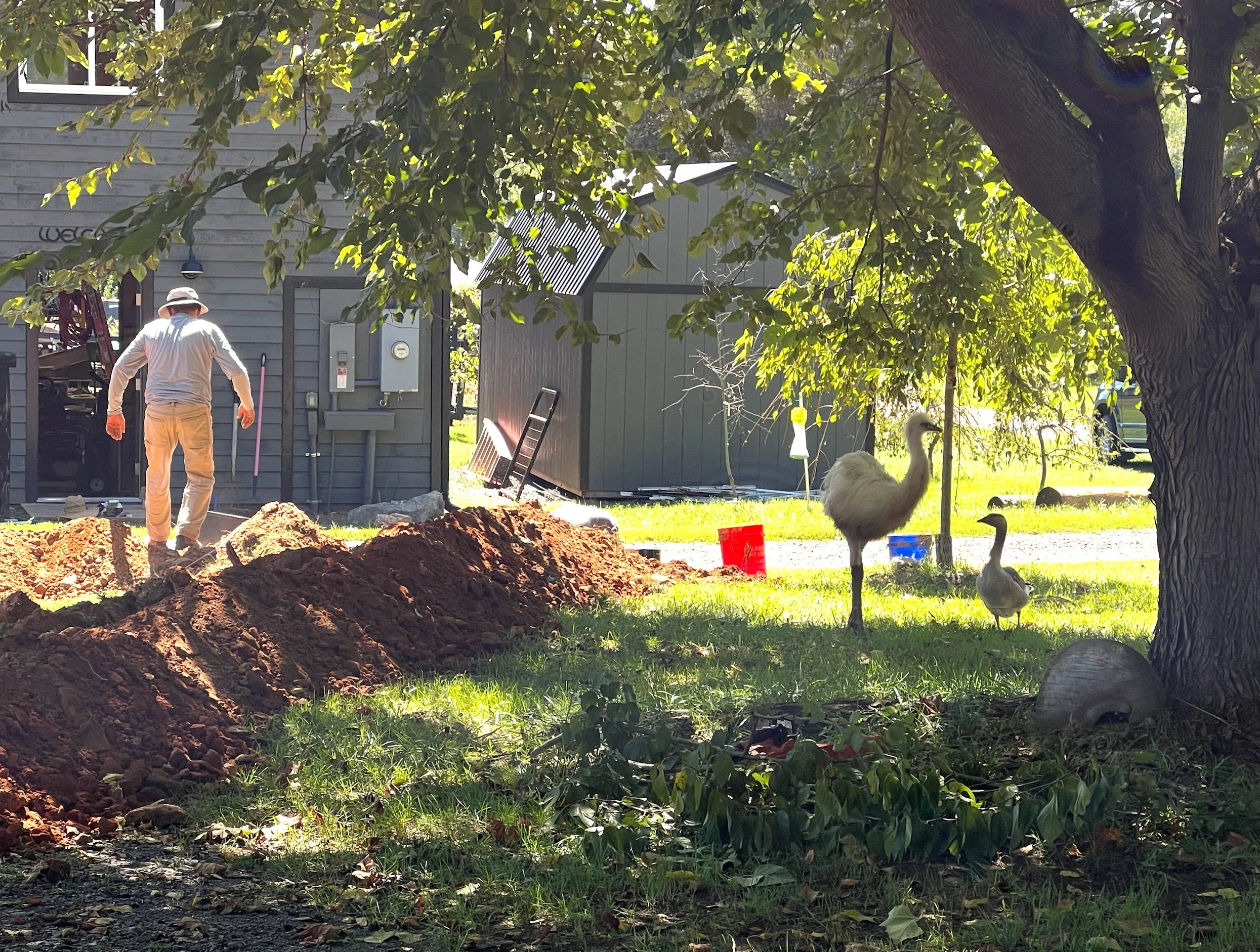 Of course, Gonzo the Goose and Gizmo the Emu supervise everything and hang out with whoever is working outside. However, both have been known to sleep on the job