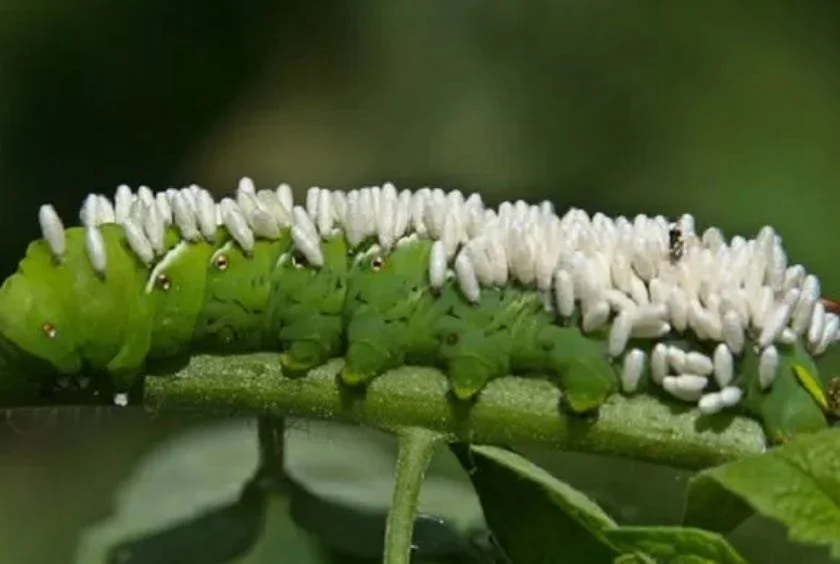 There is a wasp that lays its eggs and feeds off the caterpillar when they hatch, which is local to our area. These wasps will kill these nasty pests—it really is disgusting, but it works as a natural deterrent. Last year, I did leave the wasps on the caterpillars as suggested via an internet search (LOL) so that we would get more wasps this year. Maybe that also helped?