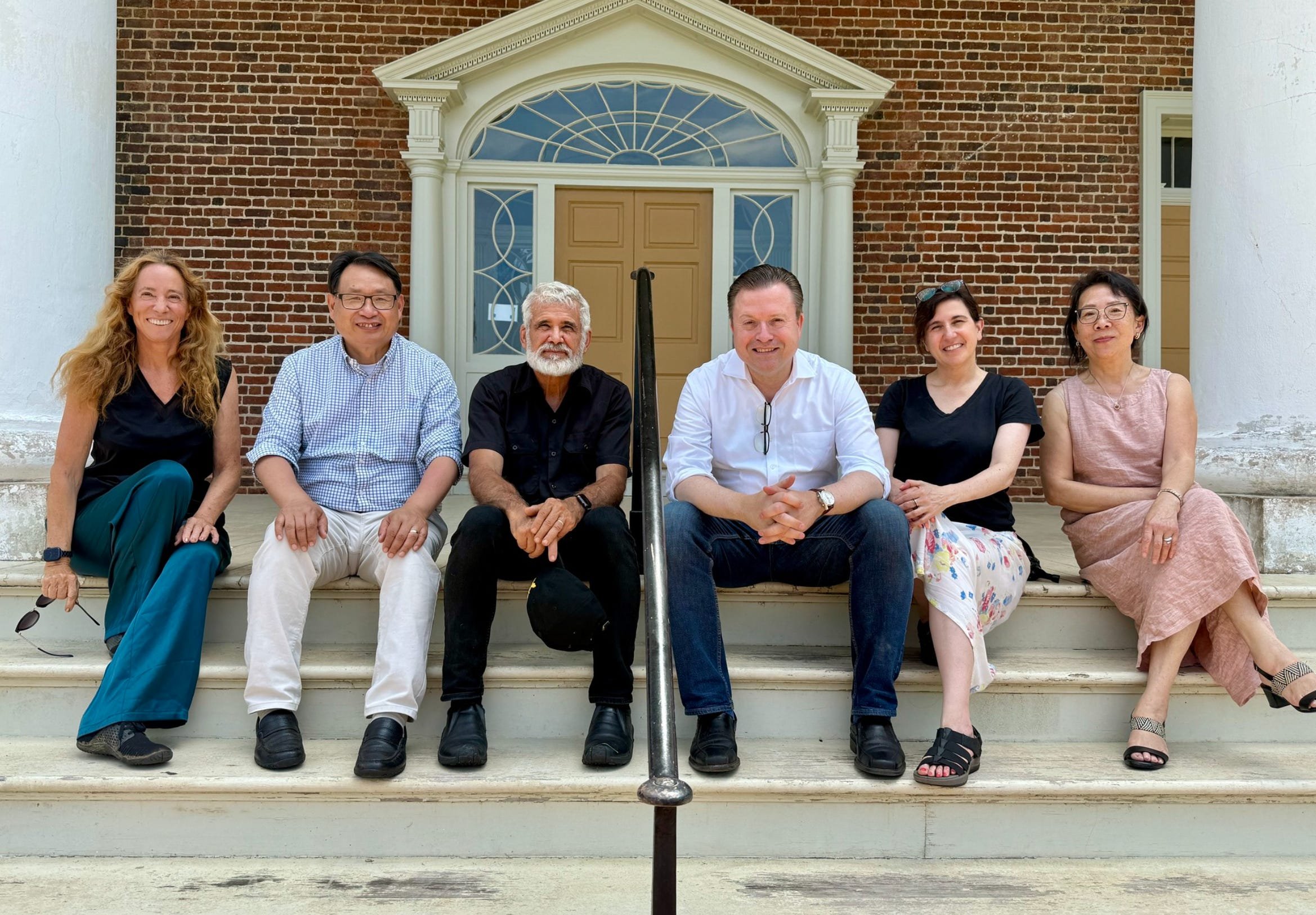 As we live in the great state of Virginia, where four out of the five first presidents of the United States originated, we have a wealth of historic houses here. So, the group of us toured James Madison’s home called Montpelier, about five miles from our homestead, on Saturday. Below, we are sitting on the steps of that historic place: