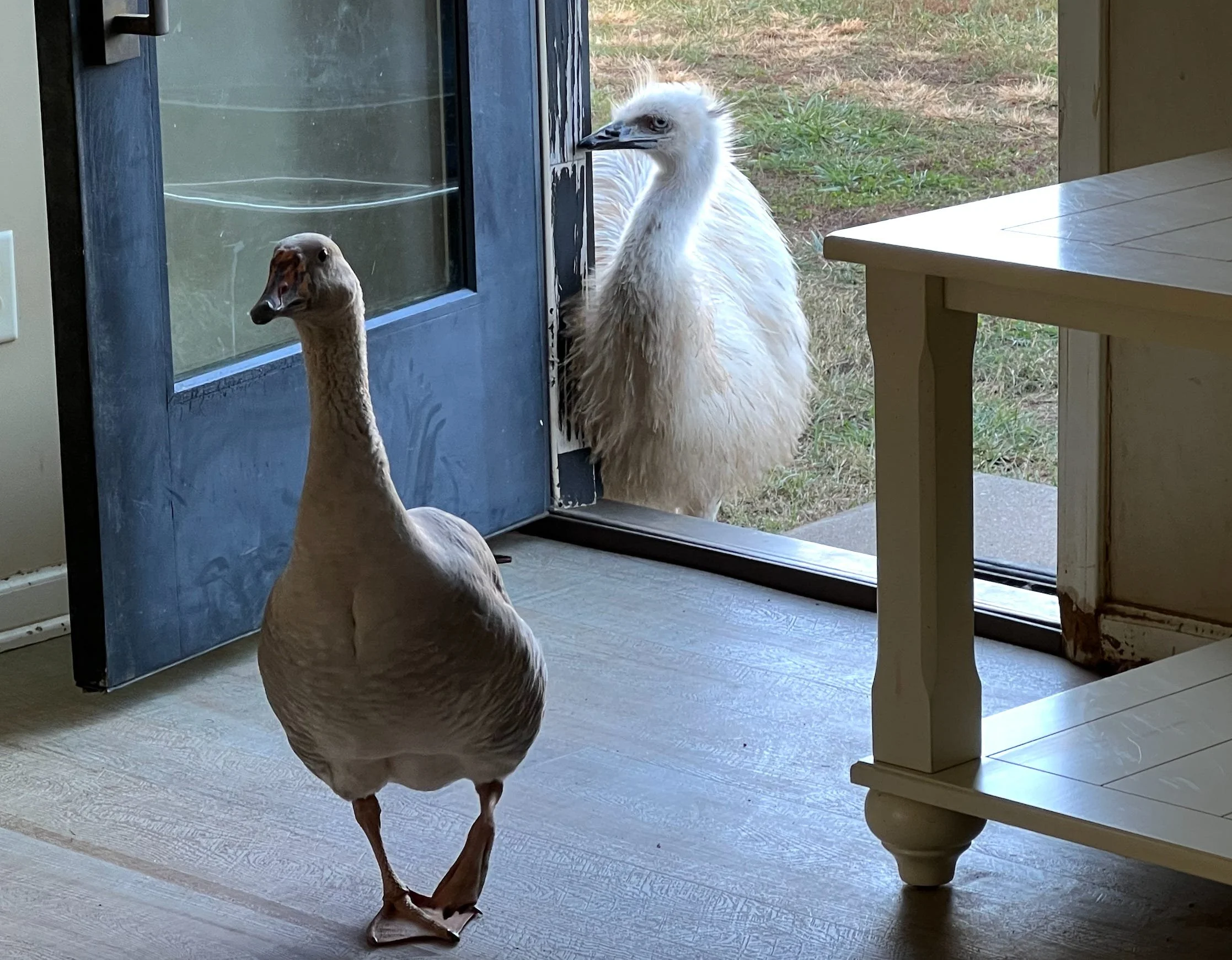 Emu has become quite the guardian animal. Since he has grown up - we have not lost a single free-ranging peacock or guinea.