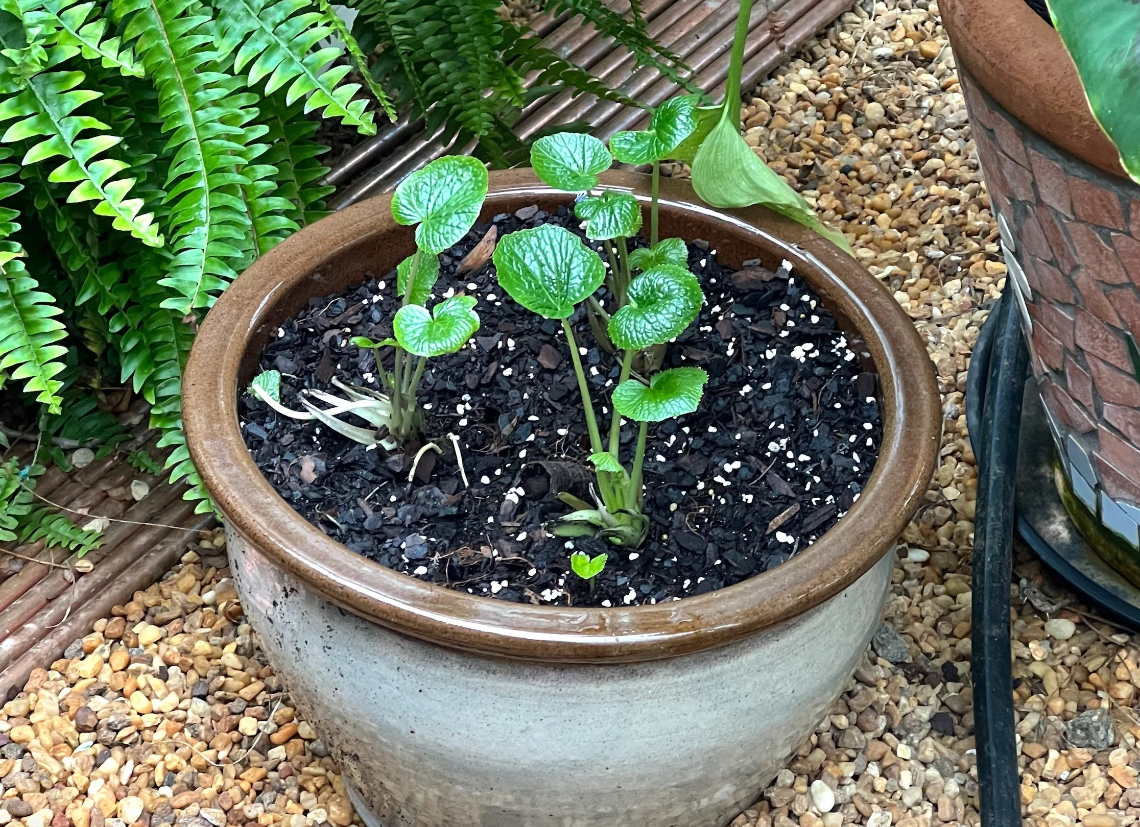 That resulted in her planting some wasabi root that she bought online. Those have now sprouted and seem to be thriving.