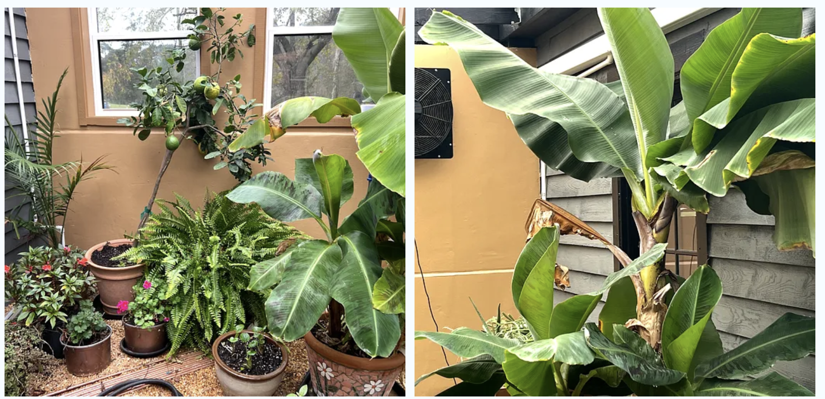 Yeh - we bought a couple of cute little one-foot banana plants about three or four years ago. Those bananas are now the monsters that ate the greenhouse! If we can wrestle them out of the greenhouse next spring, Jill intends to plant them in the ground - and let them live their best lives for the summer and die a natural death next winter. They have just gotten too darn big and have outgrown their already huge pots! Banana trees would suck water from a firehose - so if you have them as indoor plants or out - be sure to give them plenty of water.