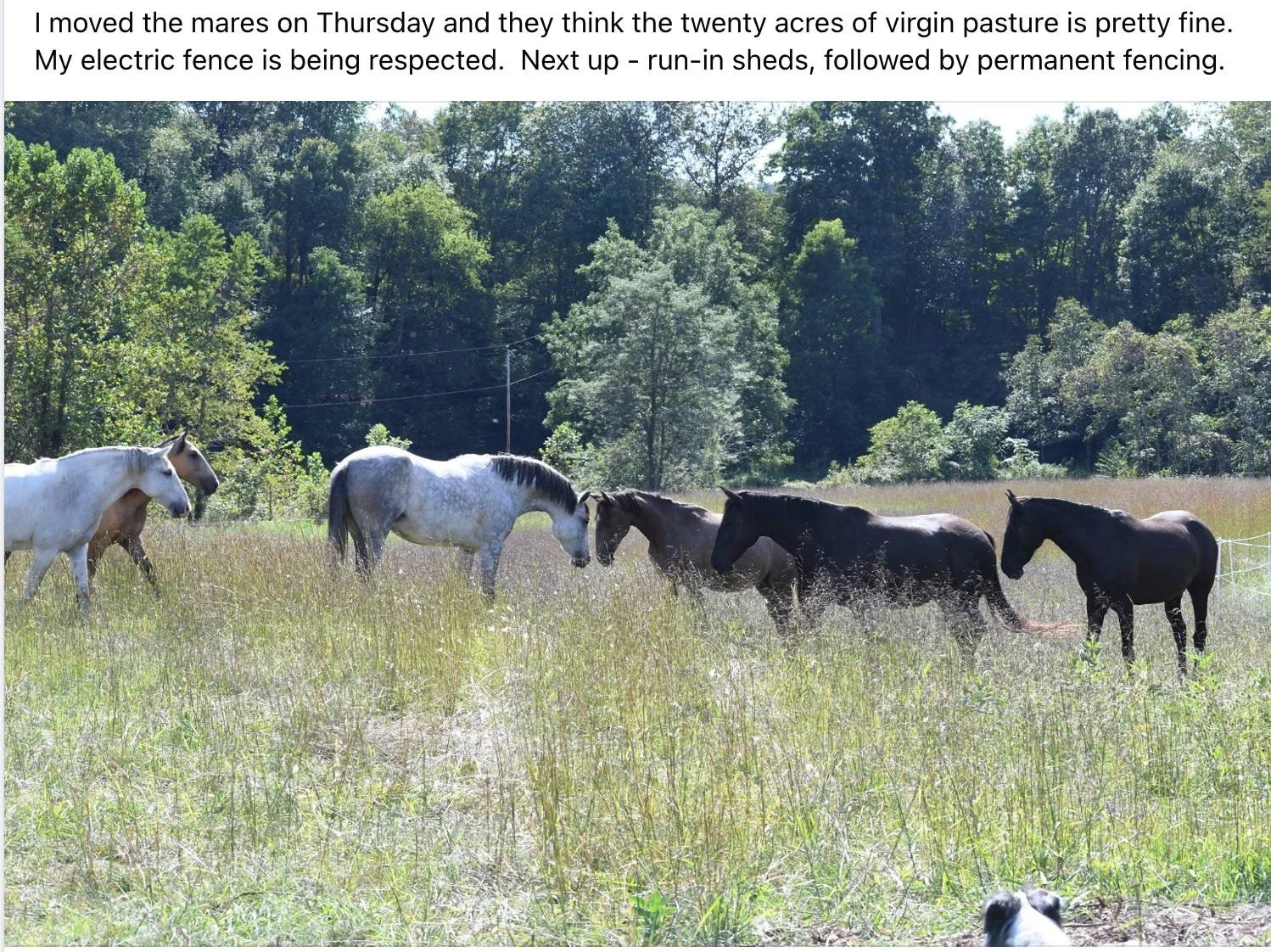 That meant temporary fencing for the horses. Electric fencing still requires pounding in fence posts, electric boxes, wiring, insulators and hotwire. Jill did a lot of that work.