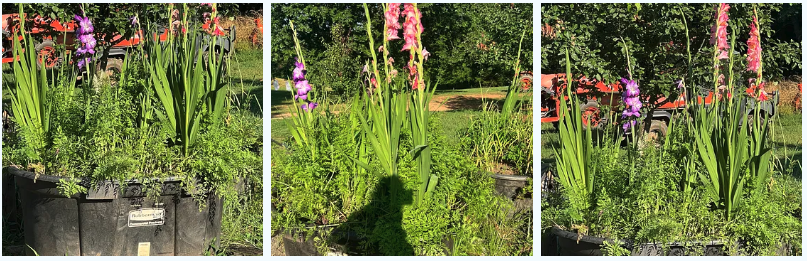 The carrots are doing nicely and we have been eating those fairly regularly. The gladiolas were planted two summers ago.