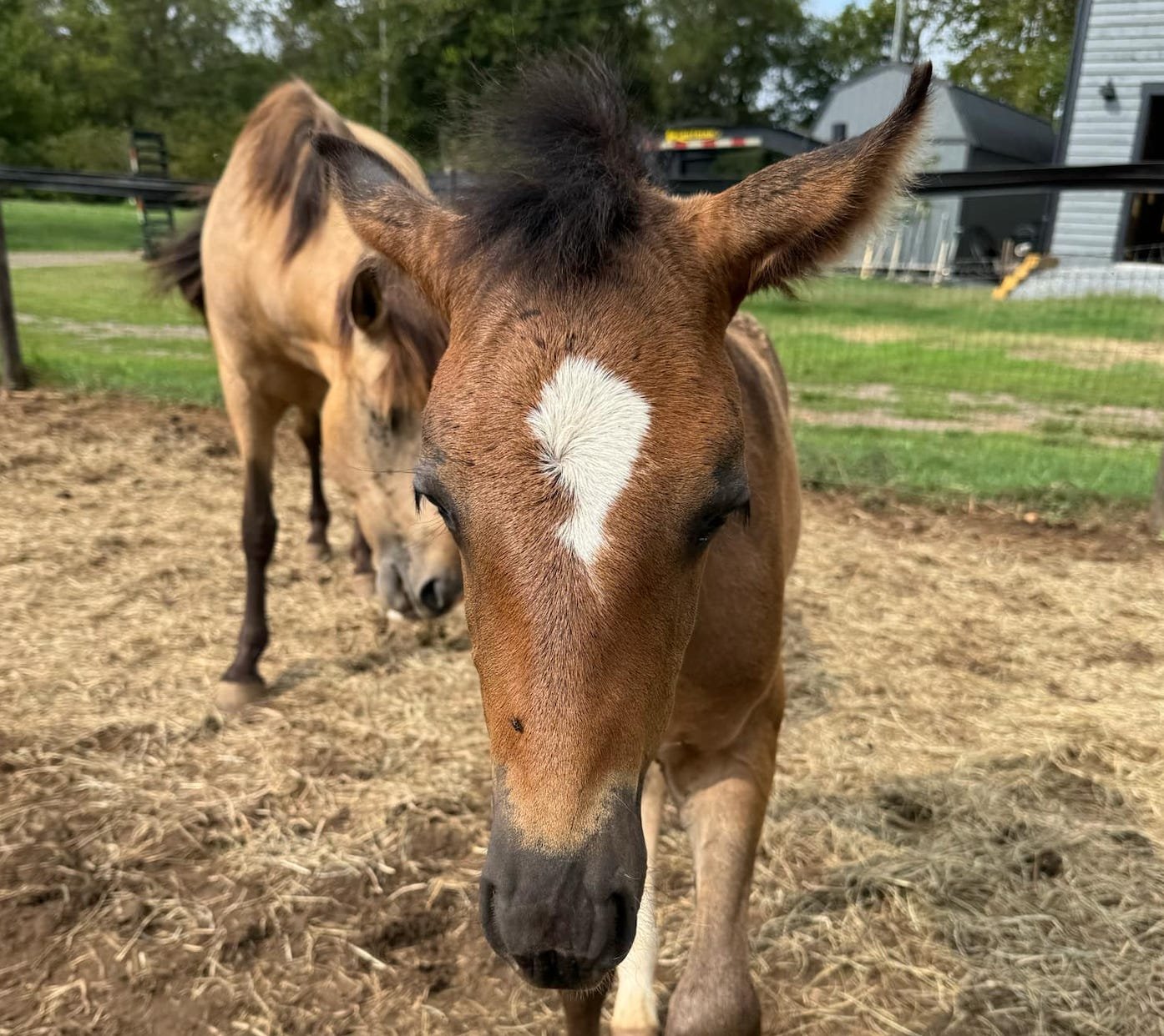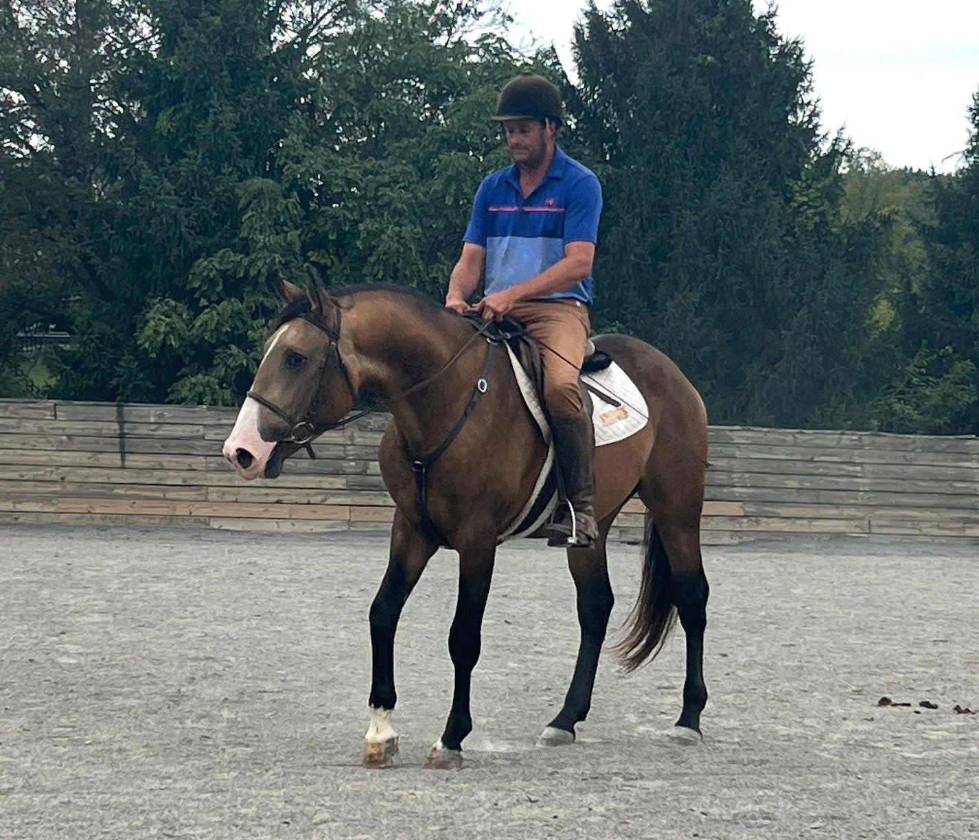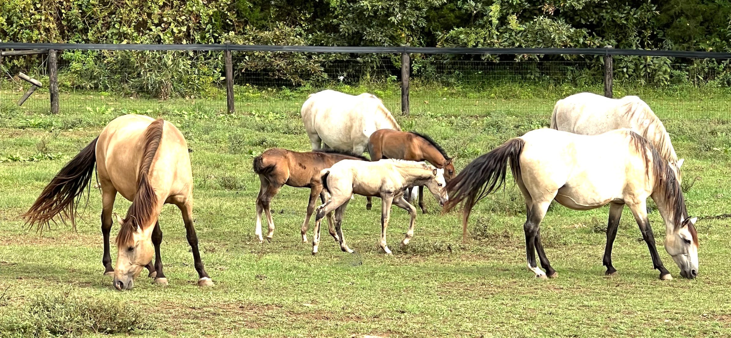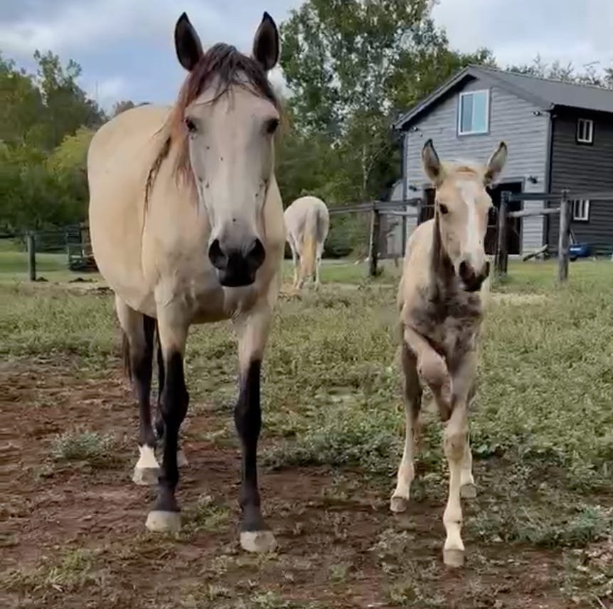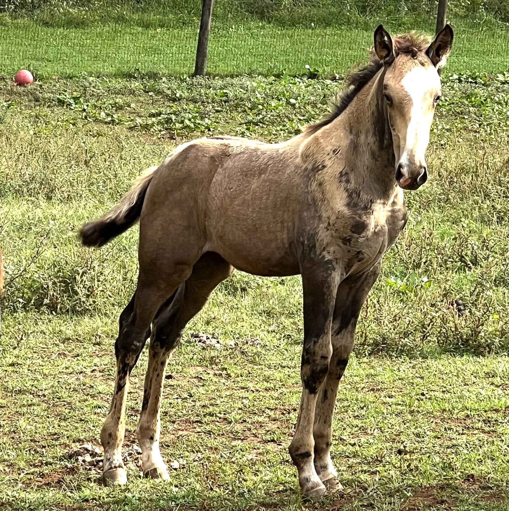On the horse front, our exceptional three-year-old stallion, Rock CAL, has been at the trainers for the summer getting backed (ridden for the first time). He has turned into a real beauty. With his buckskin/golden coloring and dapples as well as his flashy white face - he turns heads everywhere. As he lived in a barn all summer, his coloring is like a copper penny. The buckskin shading changes with both temperature and being in the sun but he is very dark - Jill’s favorite color. This coloration is pretty rare - he glows in the sun.